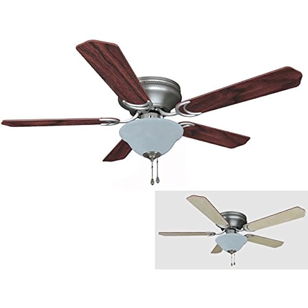 Hardware House 19 1142 Satin Nickel 52 Inch Flush Mount Ceiling Fan With Bowl Light Kit Cherry Or Light Maple Blades Amazon Com